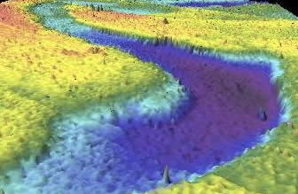 that is cut by a 1 m channel is evident. This area exhibits approximately 9 m of relief (~27 ft.).